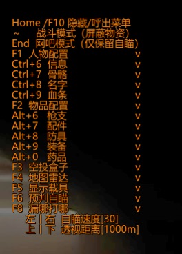 功能介绍:透视-自苗-物品显示-大小地图雷达 支持系统:W10 W11 稳定性:小号娱乐 注:游戏必须无边框 辅助价格:9.8/8小时/18/天