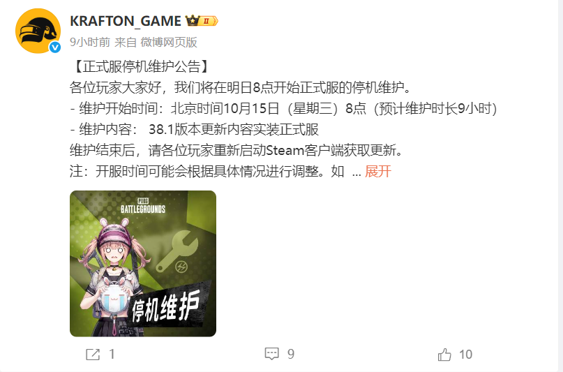 游戏维护更新通知: