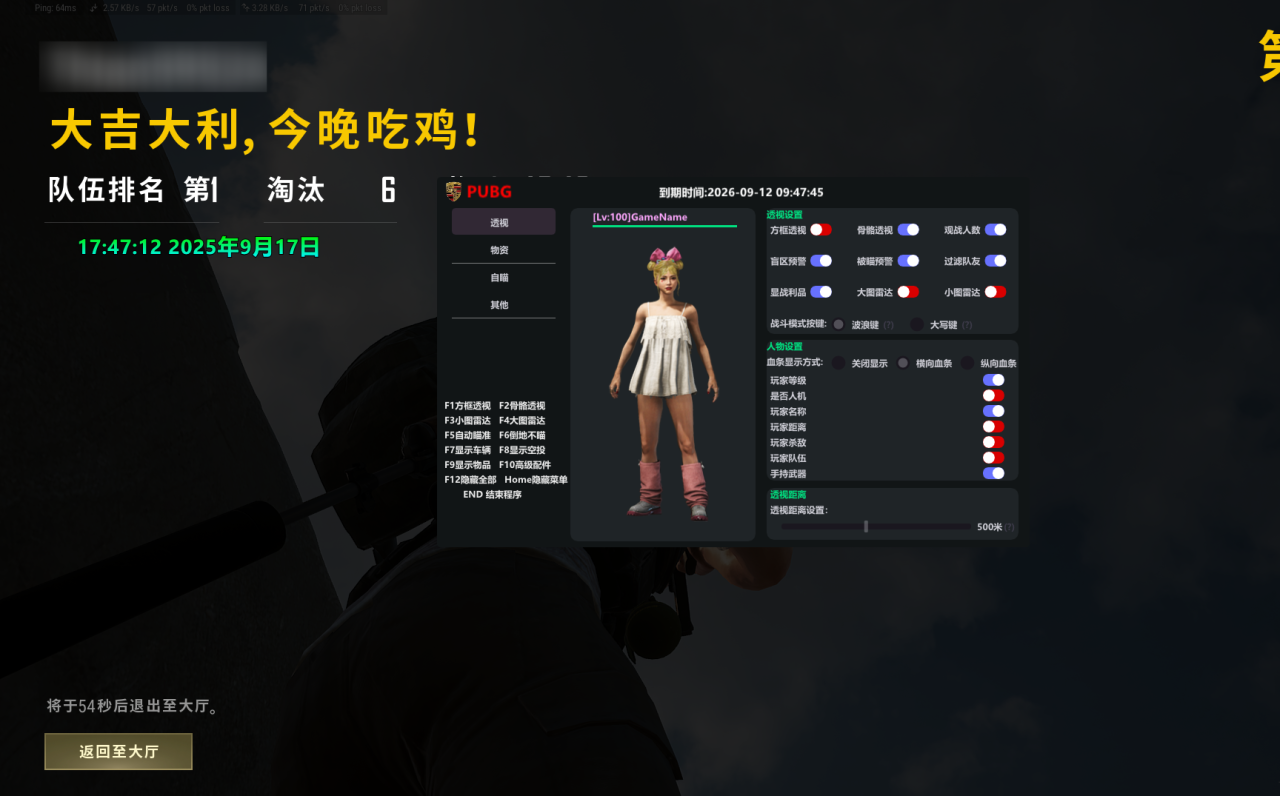 功能介绍:透视-自瞄-物品显示-大小地图雷达 支持系统:W10 W11