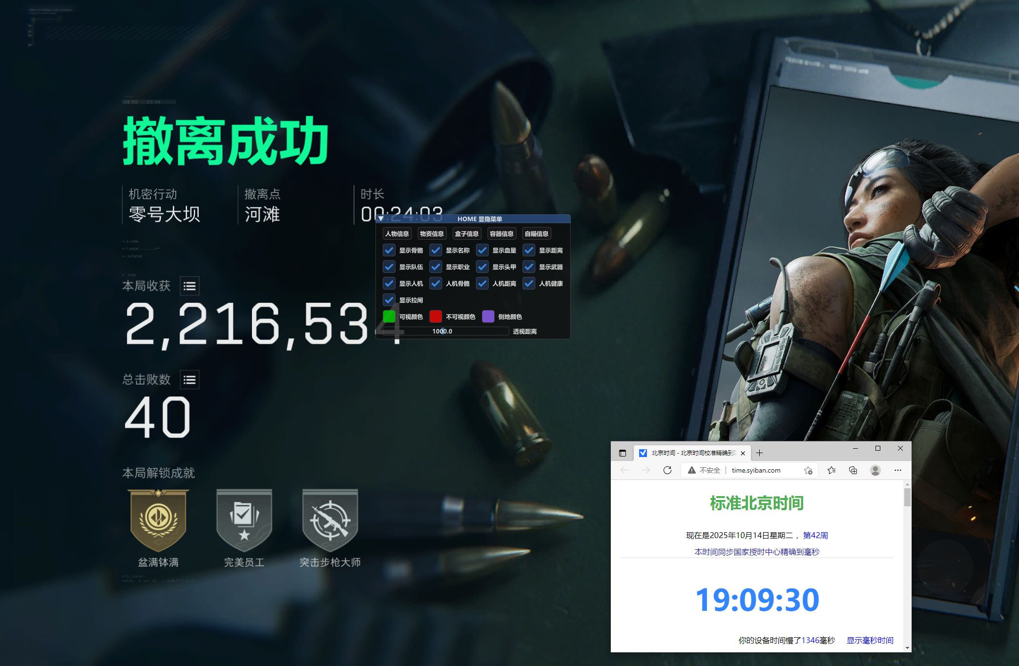 功能介绍:透视-自苗-物品显示-大小地图雷达 支持系统:W10 W11 注:游戏必须无边框