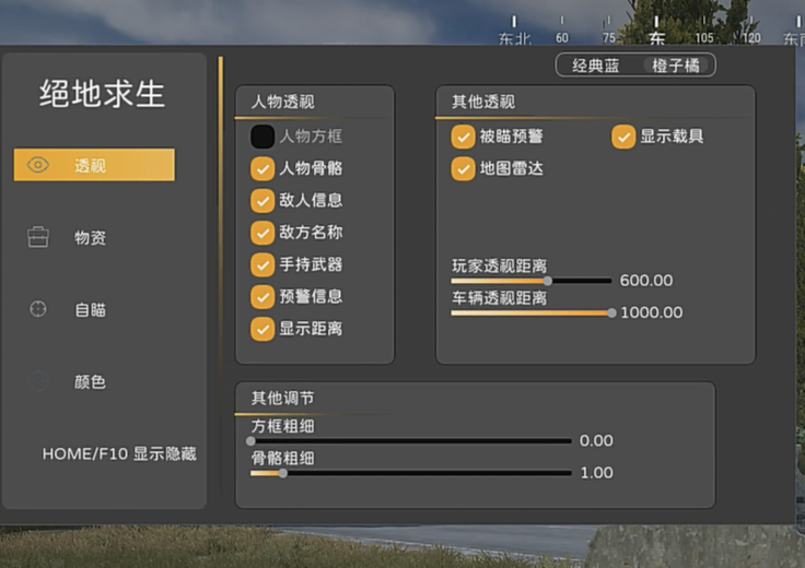 功能介绍:透视-自苗-大小地图雷达(没有物品显示) 支持系统: W10-W11 稳定指数:中小号娱乐 注意:游戏必须无边框 辅助价格:12/8小时/23/天